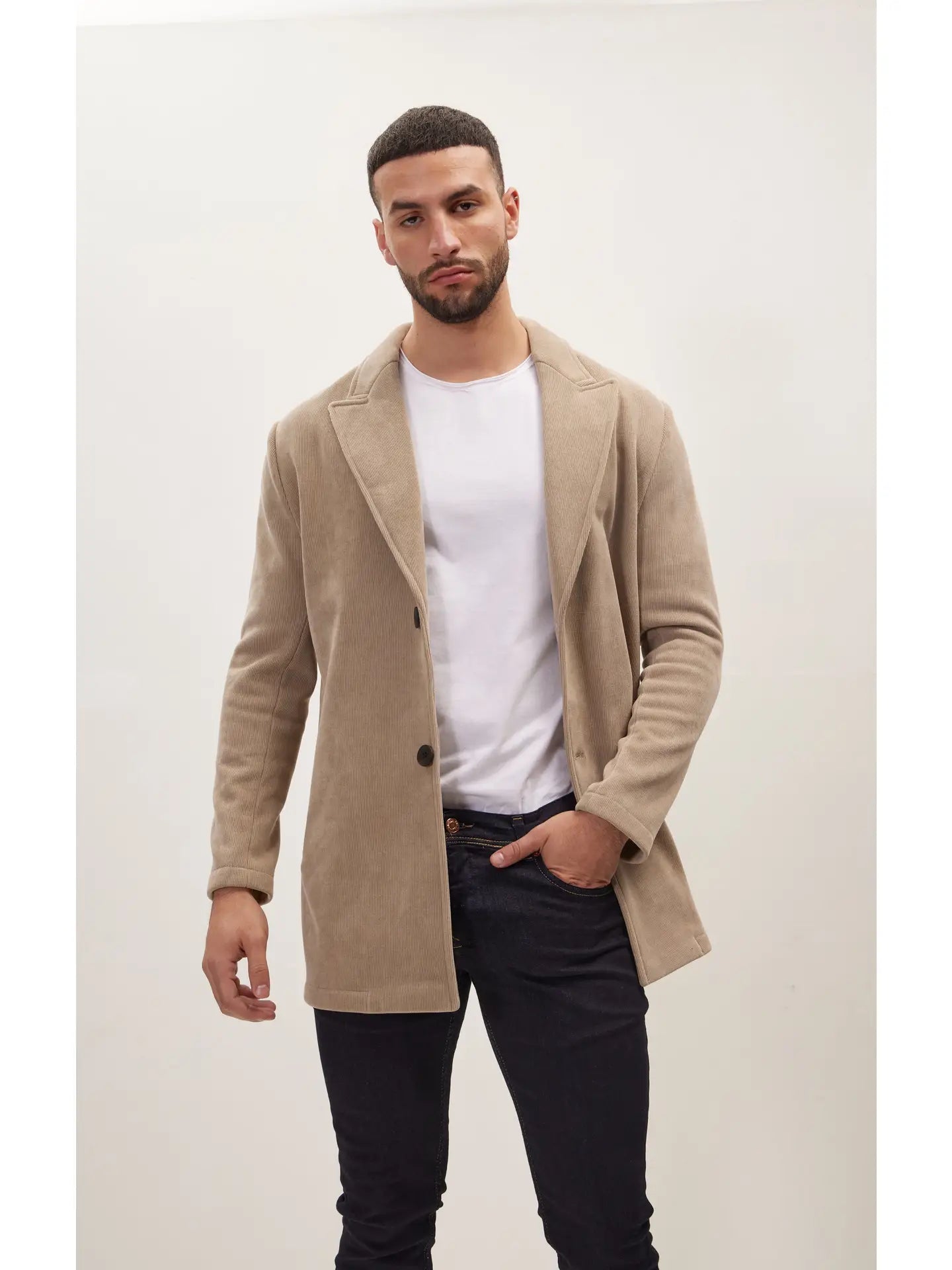 Ron Tomson Men's Relaxed Corduroy Button Closure Jacket - Beige