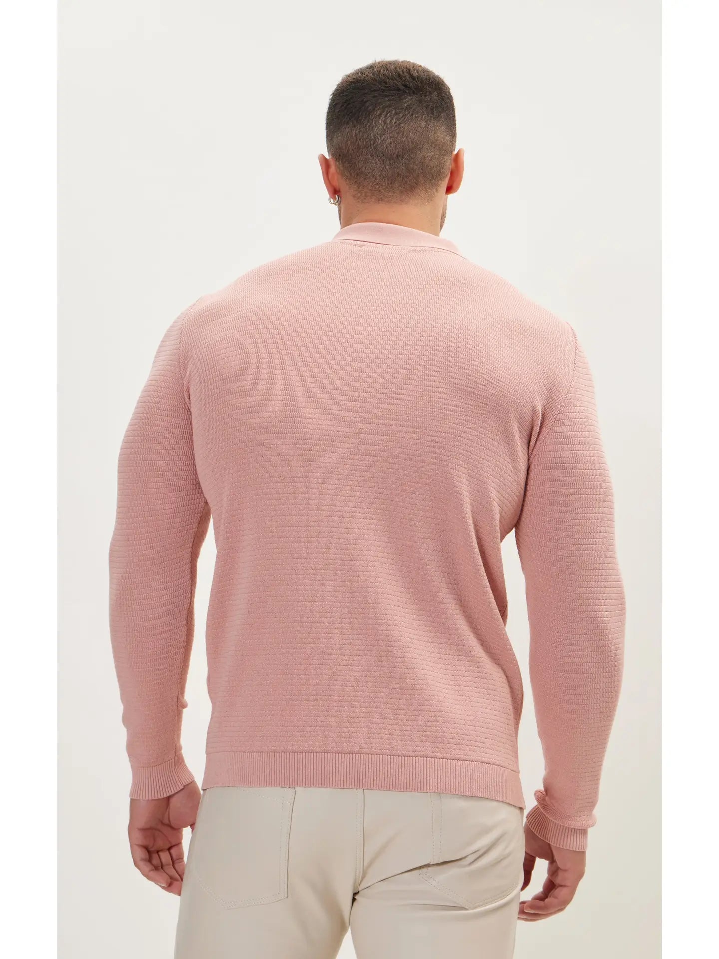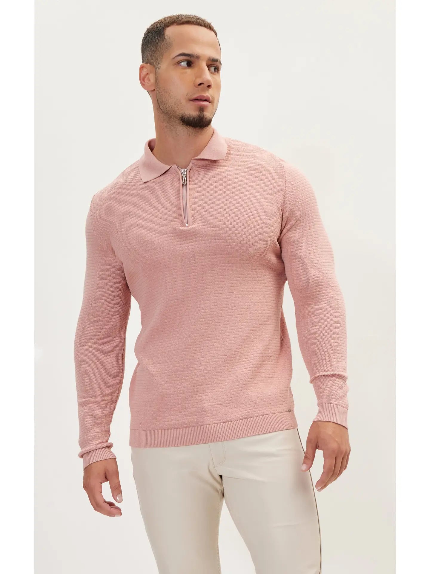 Ron Tomson-Men's Quarter Zipper Ribbed Polo - Rose