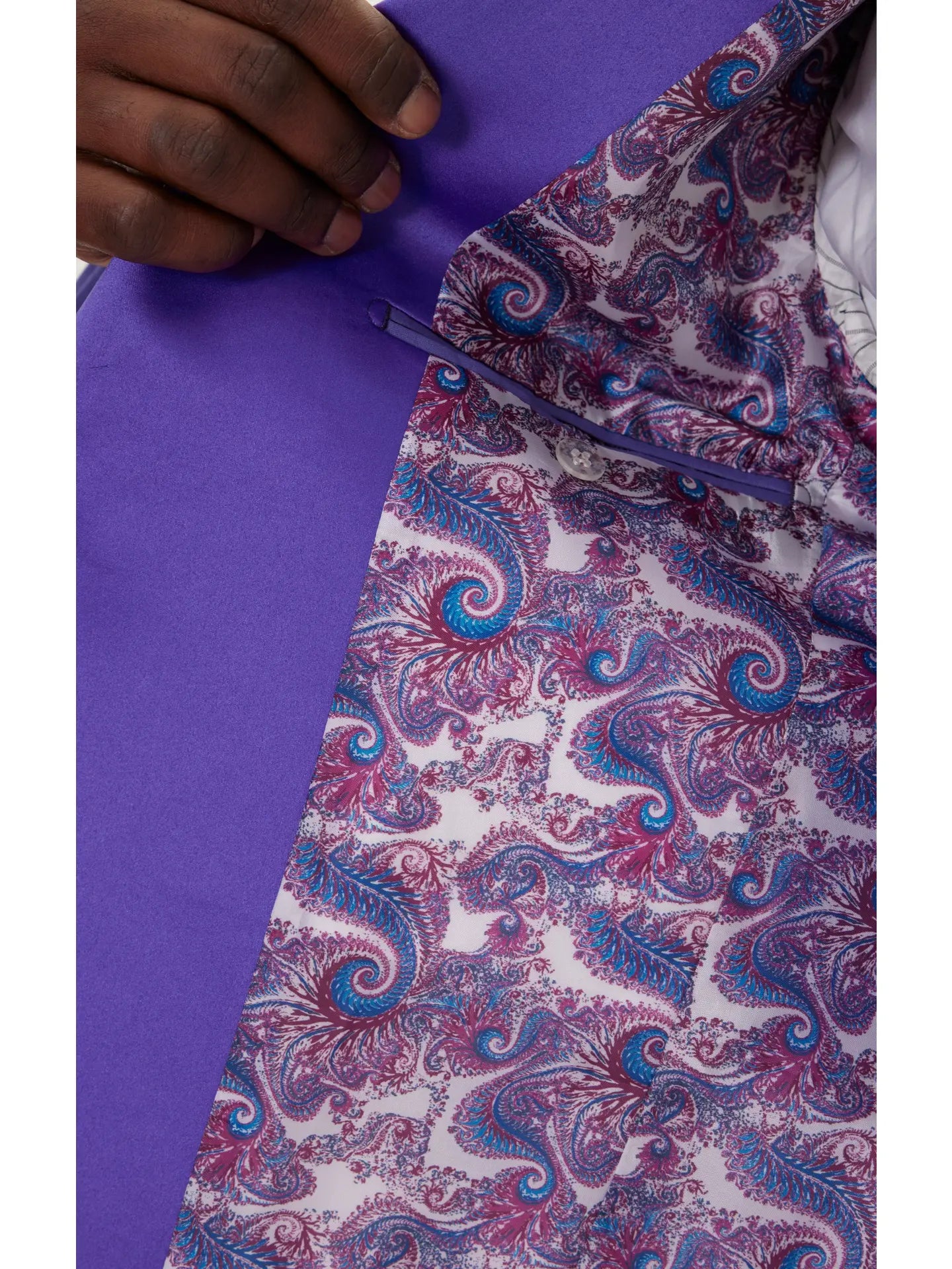 Our Super 110S Merino Wool Tuxedo in Violet is an epitome of sophistication and luxury. Designed by Ron Tomson, this suit set seamlessly blends style and comfort. The meticulously chosen Merino wool fabric ensures a soft and smooth feel, while the stunning violet hue adds a dash of uniqueness to your wardrobe. Perfect for formal events, this tuxedo exudes an aura of elegance that aligns with the brand's ethos of fashion-forward yet low-key luxury staples. Dress in style and make a lasting impression with our Super 110S Merino Wool Tuxedo.